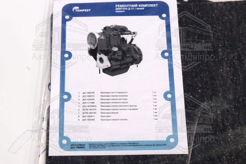 Р/к двигуна Д 21 (малий) (пароніт) (TEMPEST)
