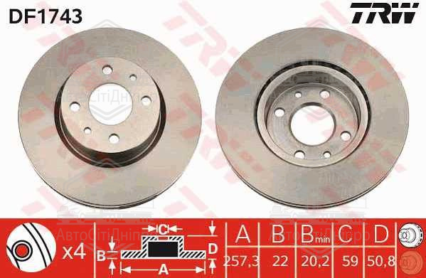Диск гальмівний ALFA ROMEO, FIAT, LANCIA, передн., вент. (вир-во TRW)