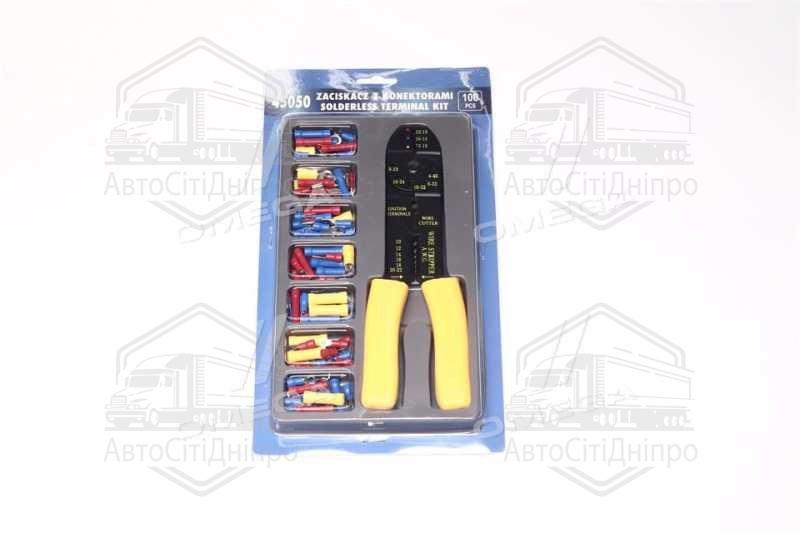 Кліщі для обтиску та зачистки проводів з контактними наконечниками, кпл. 100 шт. компл(VOREL)