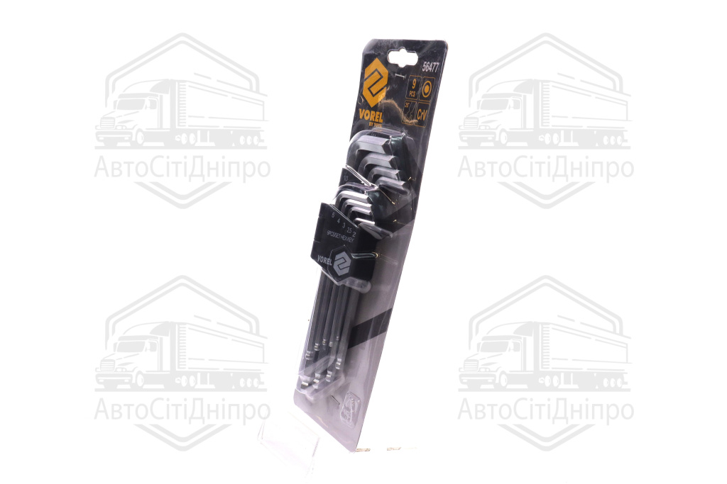 Ключі 6-гранні L-подібні: з кулькою, М2-10. Cr-V. Набір 9 шт. [10/60] (VOREL)