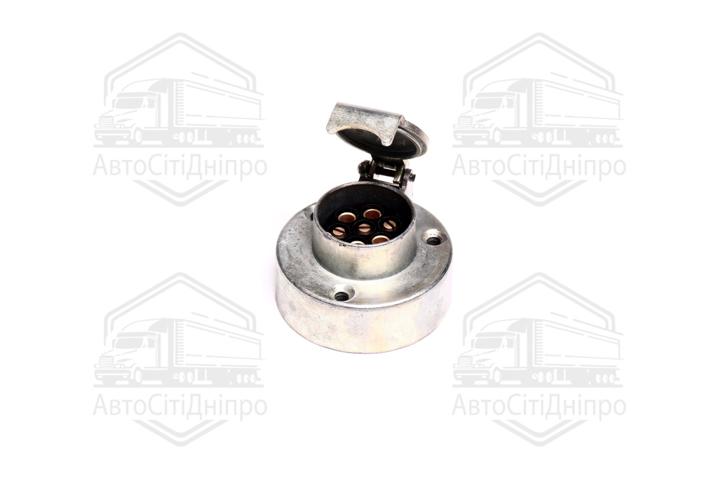 Ця металева 7-контактна розетка призначена для підключення електрообладнання причепів вантажних автомобілів та сільськогосподарської техніки з напругою бортової мережі 12В. Міцний корпус захищає контакти від механічних пошкоджень та впливу зовнішнього середовища, забезпечуючи стабільну передачу сигналу на світлові прилади. Виріб сумісний з популярними моделями техніки, зокрема МАЗ, КАМАЗ, ЗІЛ та різноманітними марками причепів вітчизняного виробництва. Надійне кріплення гарантує тривалий термін служби навіть при інтенсивній експлуатації в складних умовах.