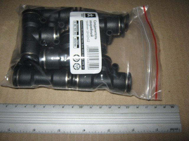 З'єднувач пневматичний цанговий Т-подібний 12х12х12 пластиковий <ДК>