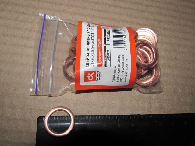 Шайба паливних трубок (14х20х1,5) <ДК> (мідь ДСТУ 1173)