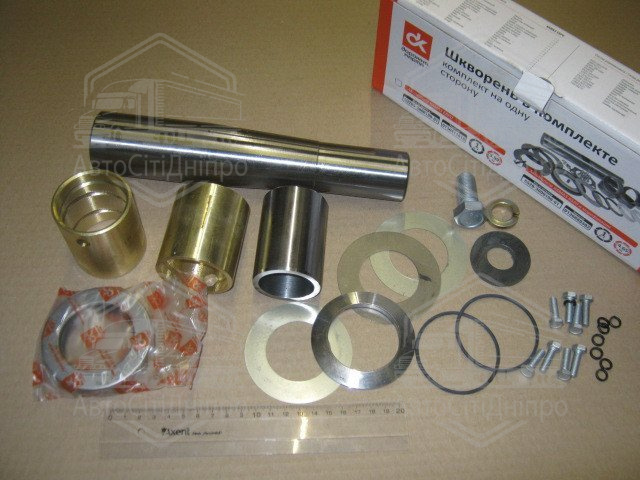Шкворень у комплекті КАМАЗ 6520, ЗІЛ, УРАЛ, ПАЗ (підшипники вир-во ДК, к-кт на один бік) <ДК>