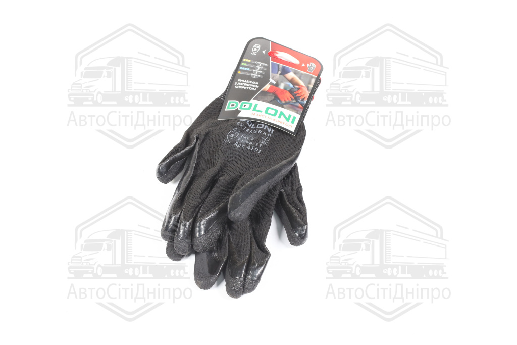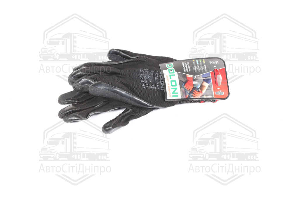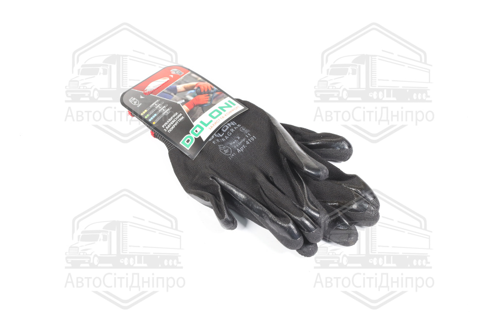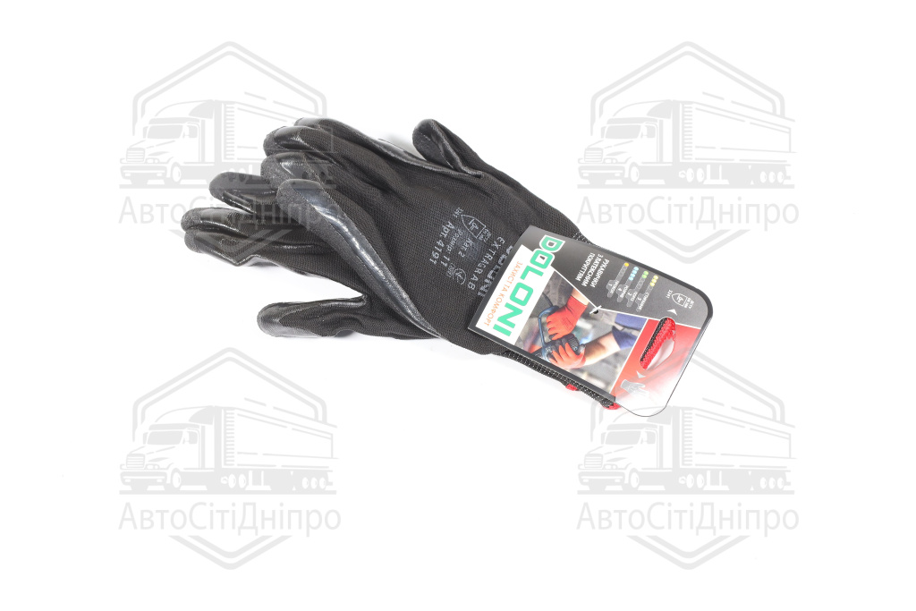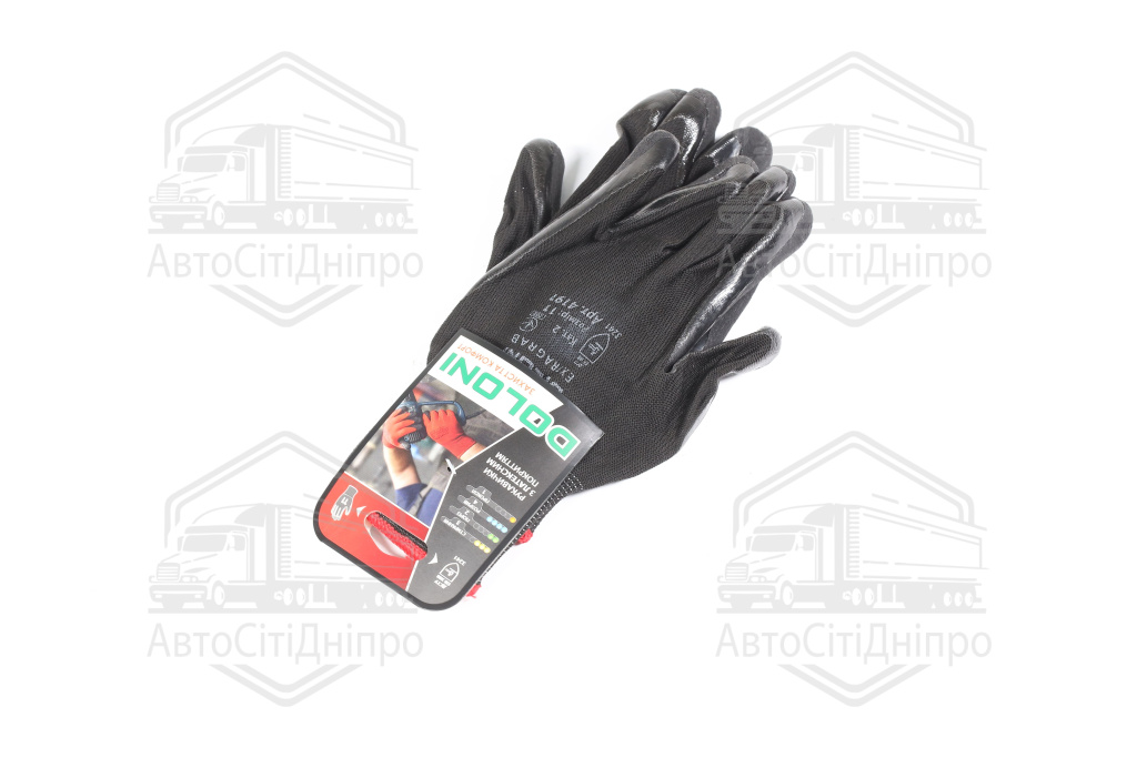 Рукавички трикотаж, чорні, поліестер, в'язаний манжет, латекс, розмір 11 (DOLONI)