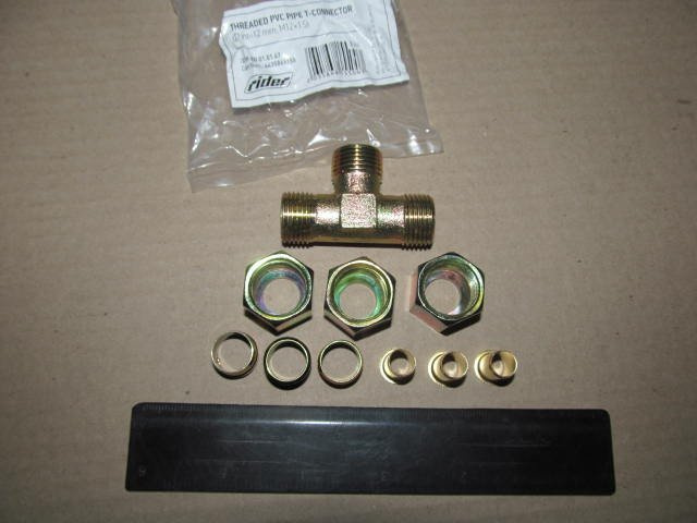З'єднувач пневматичний D12-12-12 з затискною гайкою Т-подібний М18х1.5 сталь (RIDER)