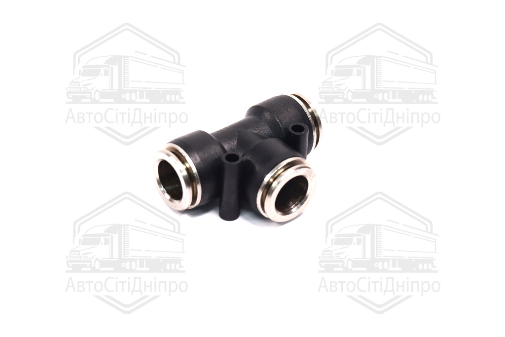 З'єднувач пневматичний D15-15-15 цанговий Т-подібний пластик-сталь (RIDER)