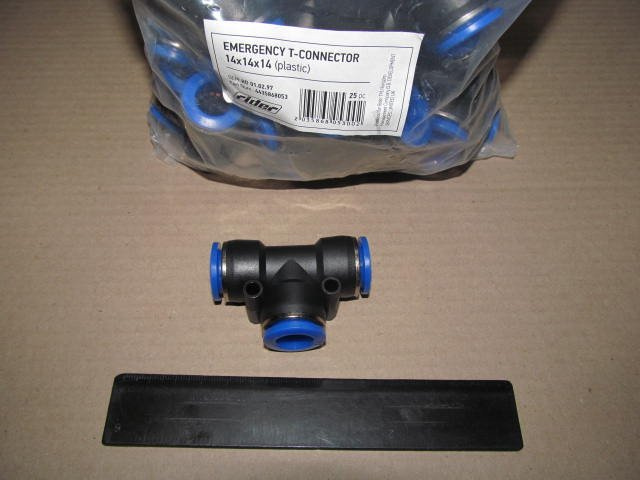 З'єднувач пневматичний D14-14-14 цанговий Т-подібний пластик (RIDER)