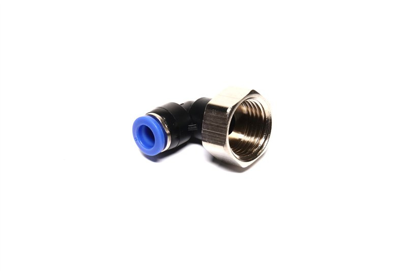 З'єднувач пневматичний D8 різьбовий-цанговий L-подібний 1/2 пластик (RIDER)