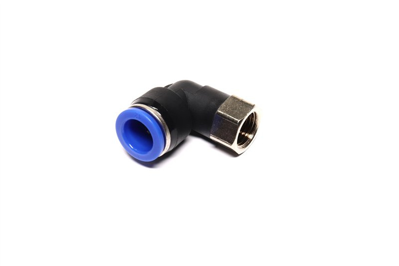 З'єднувач пневматичний D12 різьбовий-цанговий L-подібний 1/4 пластик (RIDER)