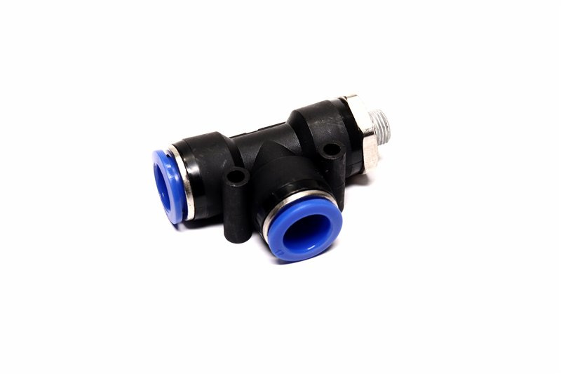 З'єднувач пневматичний D12-12 різьбовий-цанговий Т-подібний 1/2 пластик (RIDER)
