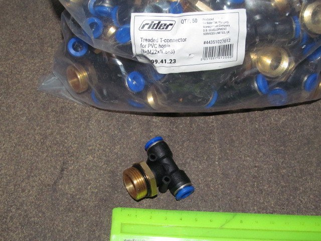 З'єднувач пневматичний D8-8 різьбовий-цанговий Т-подібний М22х1.5 пластик (RIDER)