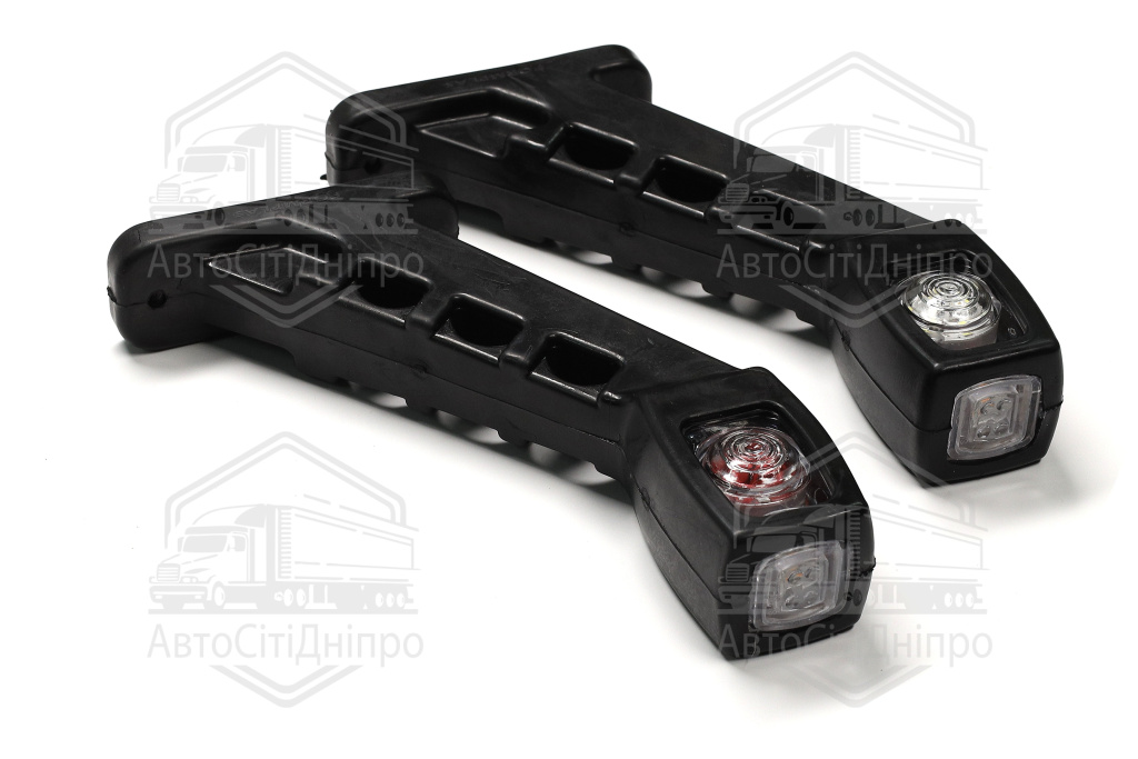 Цей світлодіодний габаритний ліхтар кутової конструкції на 24В призначений для позначення габаритів вантажних автомобілів, причепів та спецтехніки. 14 яскравих діодів забезпечують чітку видимість транспортного засобу в темну пору доби та під час опадів. Продукція бренду TEMPEST відповідає стандартам безпеки дорожнього руху та відрізняється тривалим терміном служби. Завдяки кутовому кріпленню, ліхтар підходить для монтажу на бортові платформи та фургони таких популярних марок, як MAN, DAF, Volvo, Scania та Mercedes-Benz.