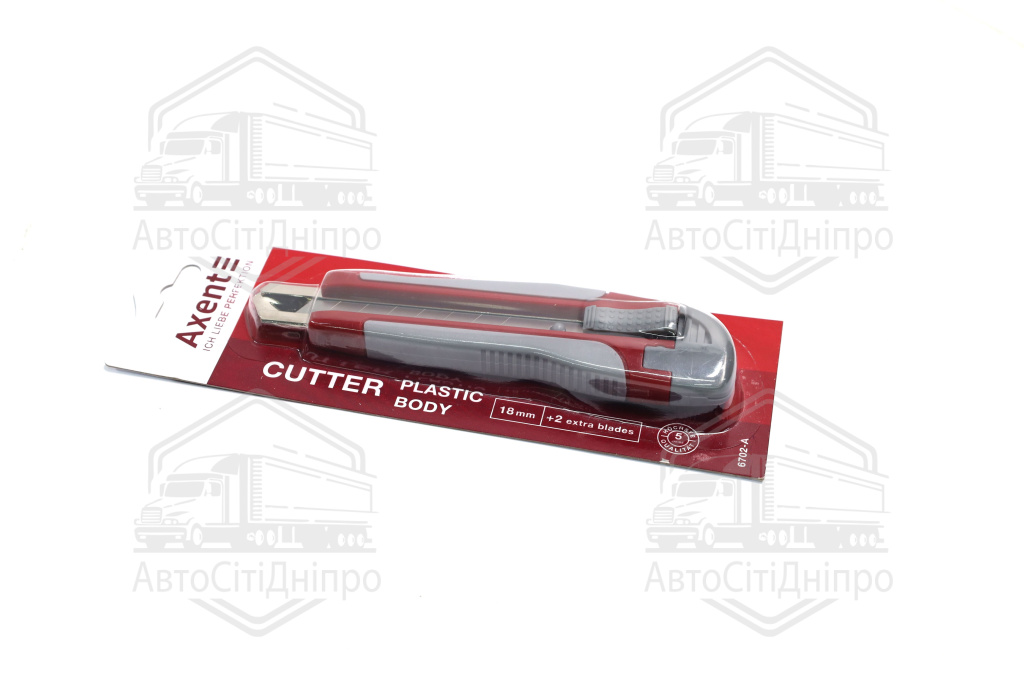 Ніж канц. 18мм, пласт. корп., метал. напрямні, гумові вставки+2змінних леза, Axent