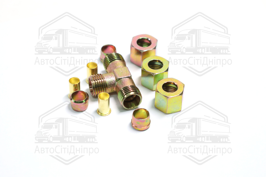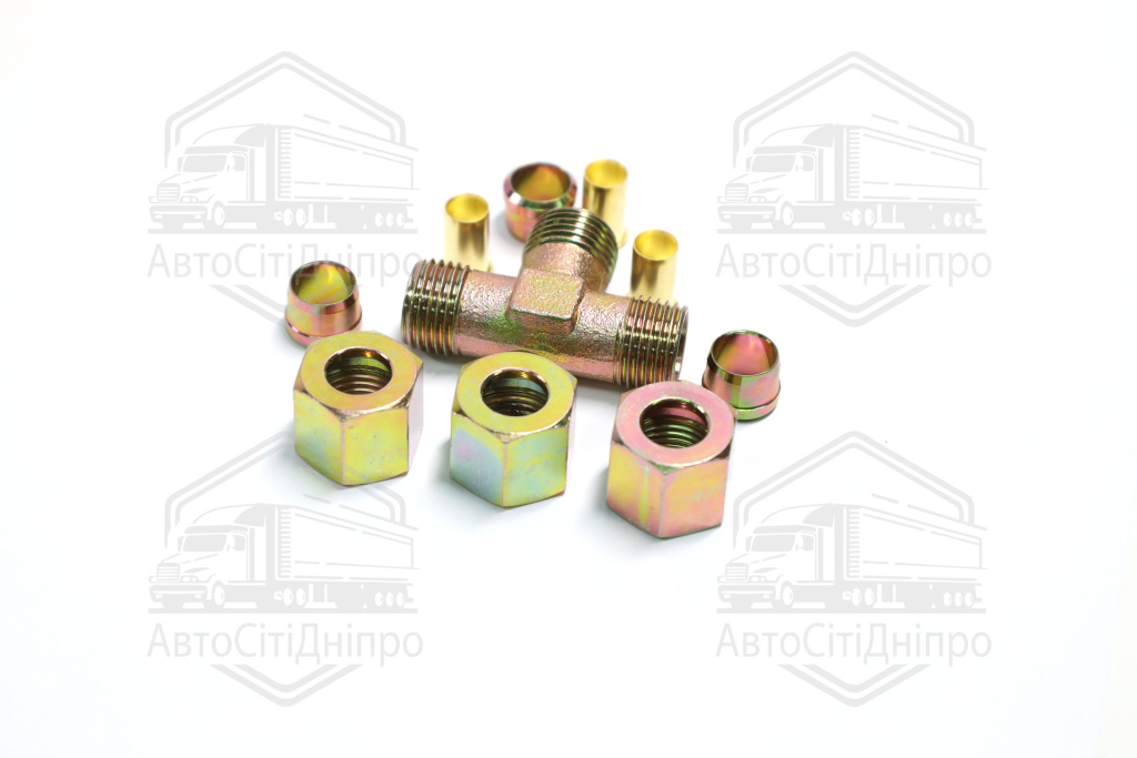 З'єднувач трубки трійник (Dвнут.=10мм, М16х1,5) (1штуцер,3гайки,3втулки,3шайби) (RIDER)